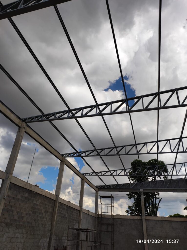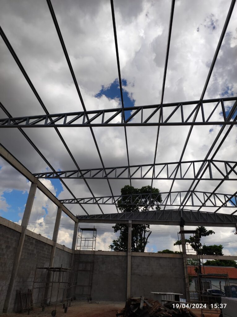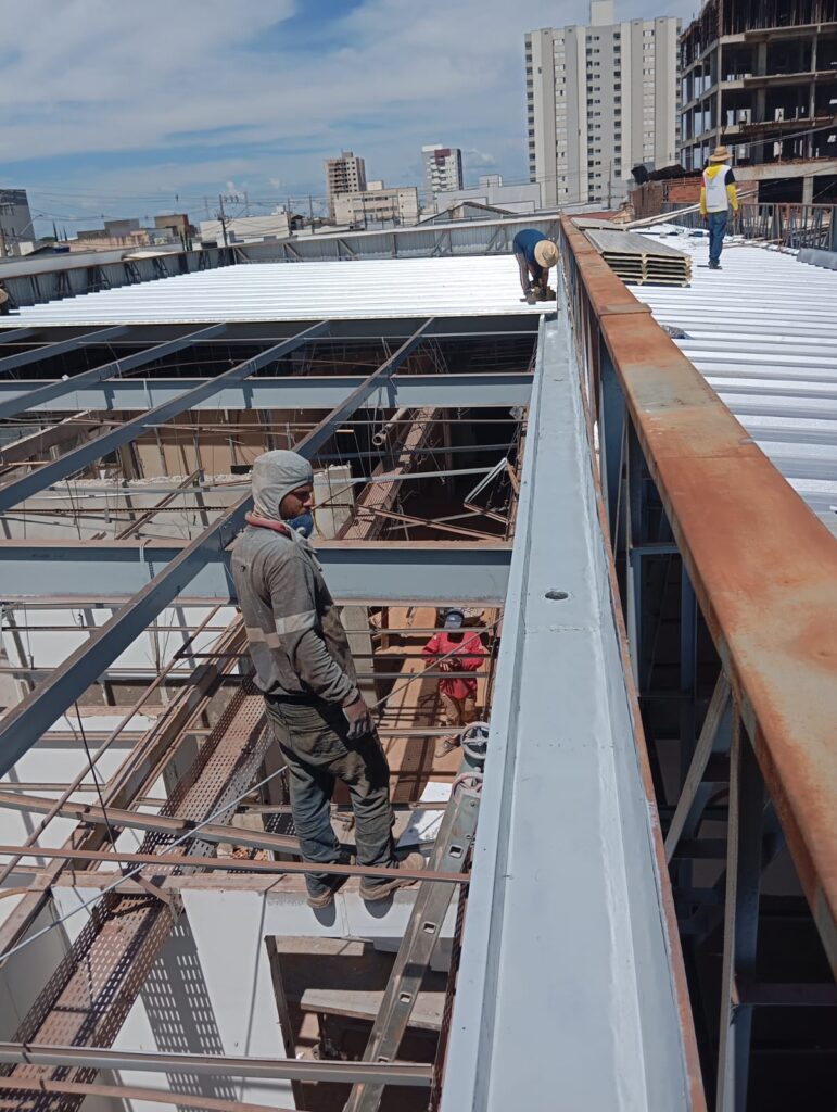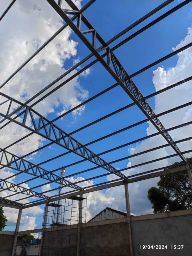 - Execução de estrutura metálica para cobertura com telha termoacústica;