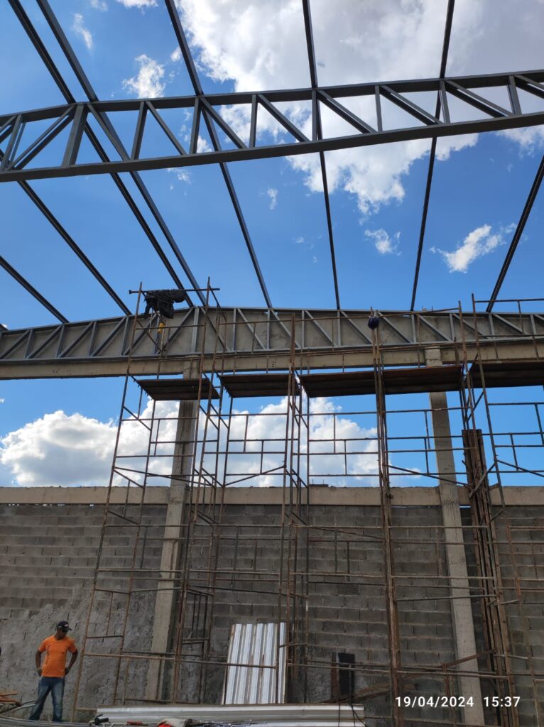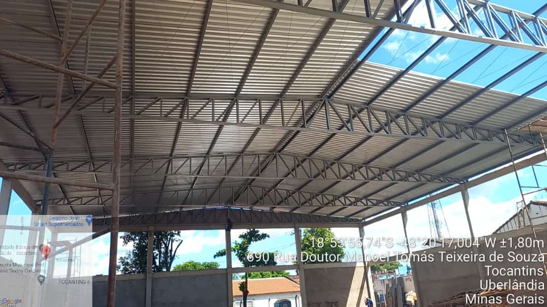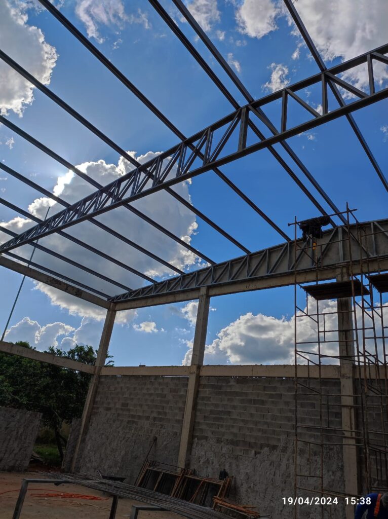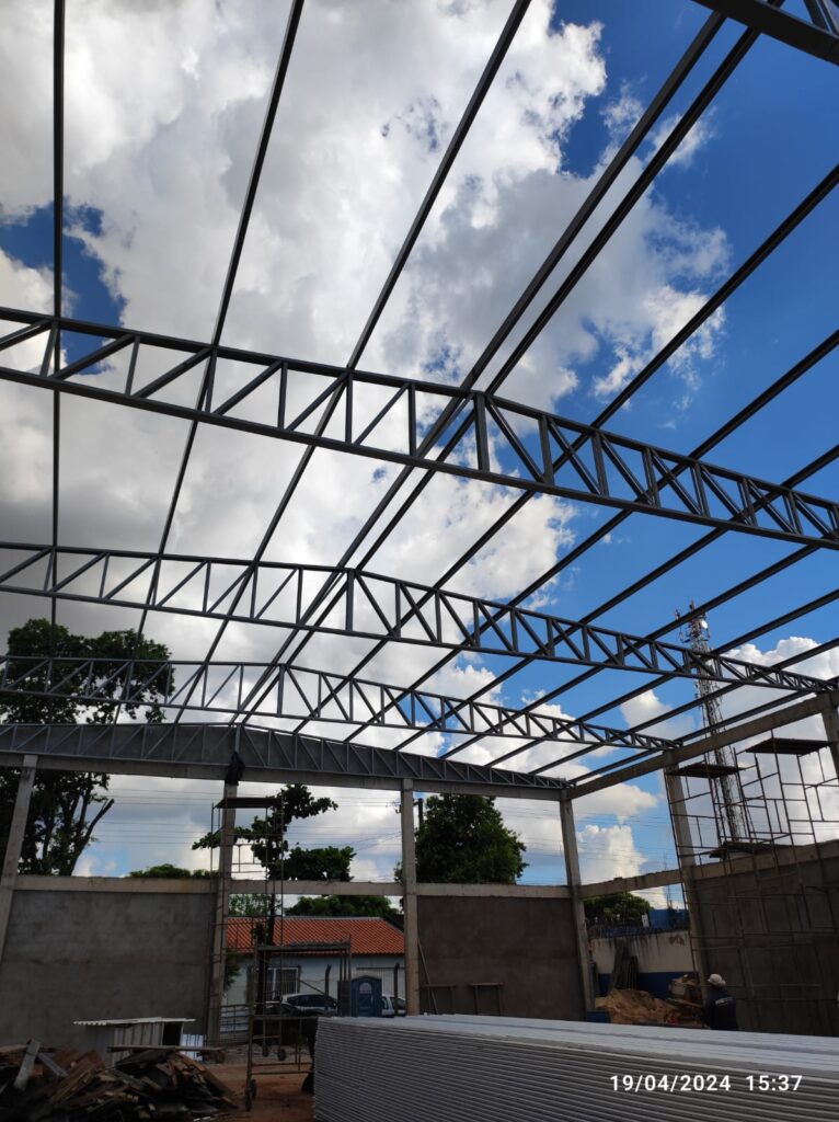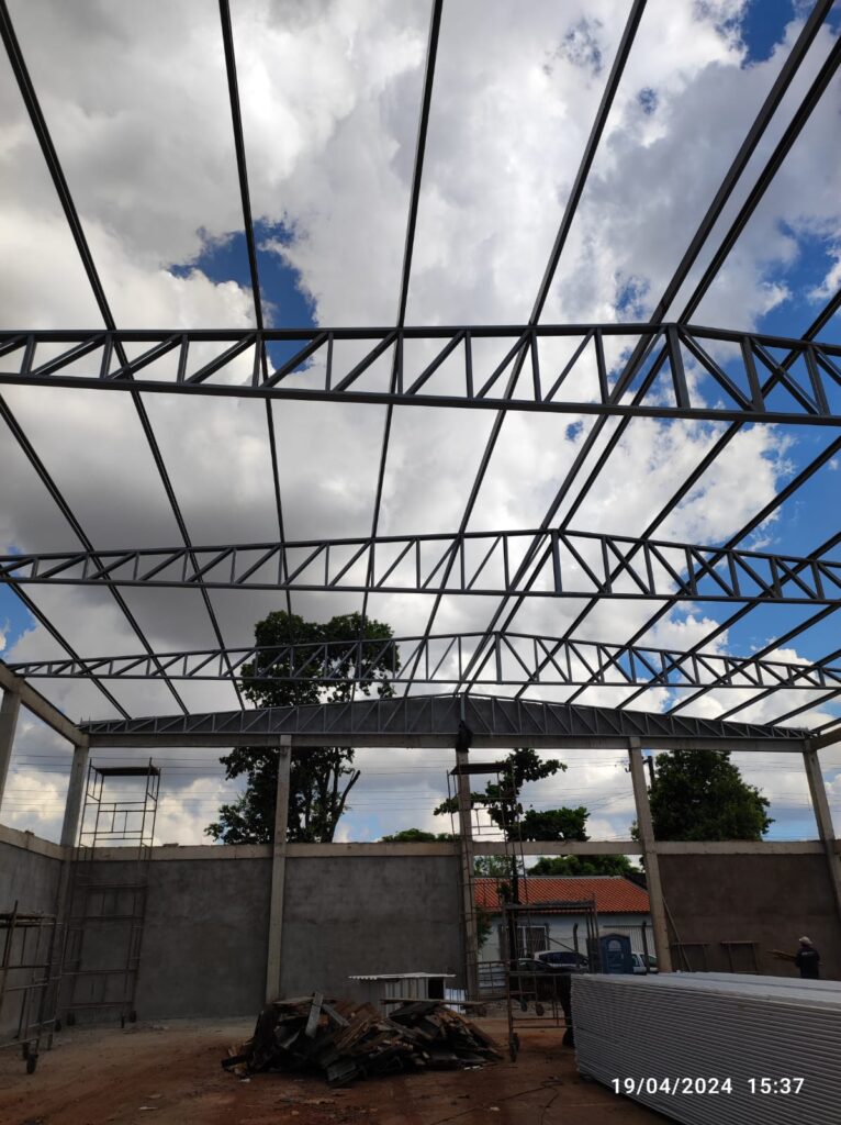 - Execução de estrutura metálica para cobertura com telha termoacústica;