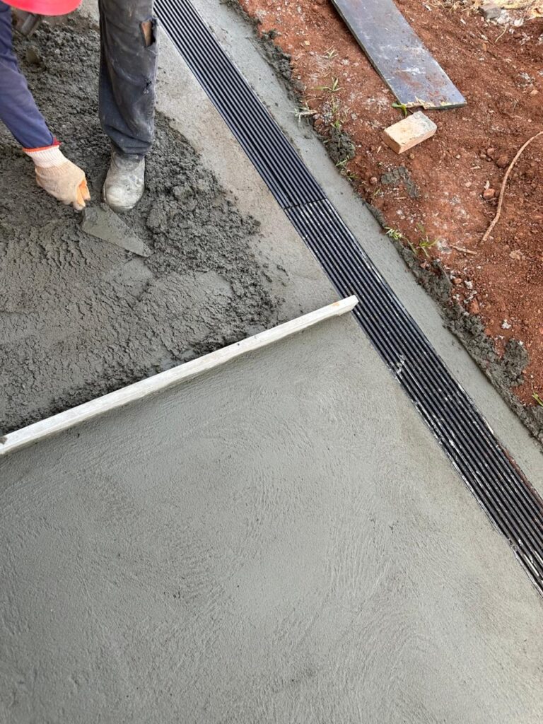 - Execução de piso em concreto armado polido, passeio em concreto e piso podo tátil e rampas;