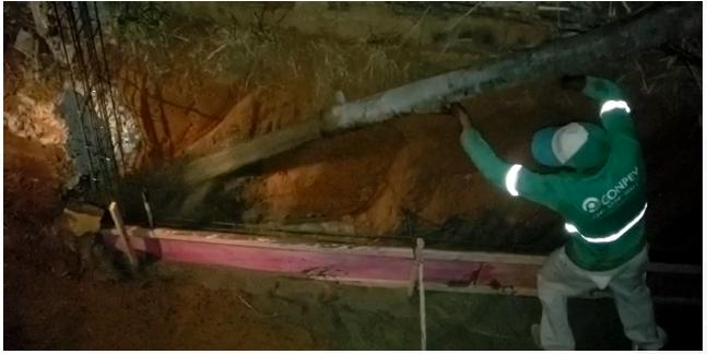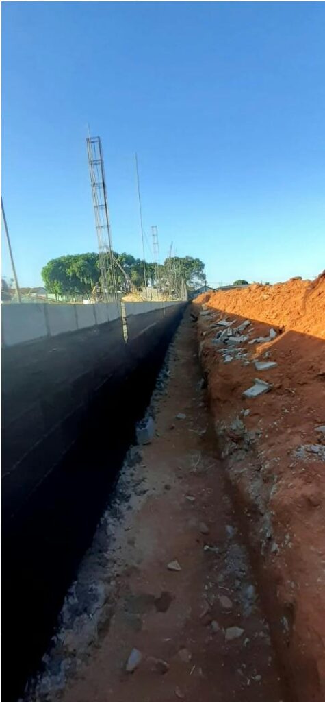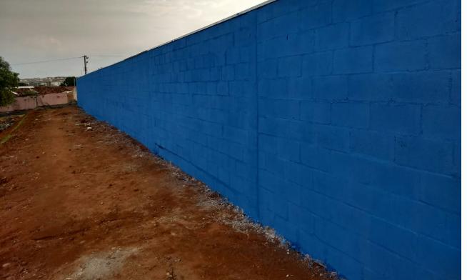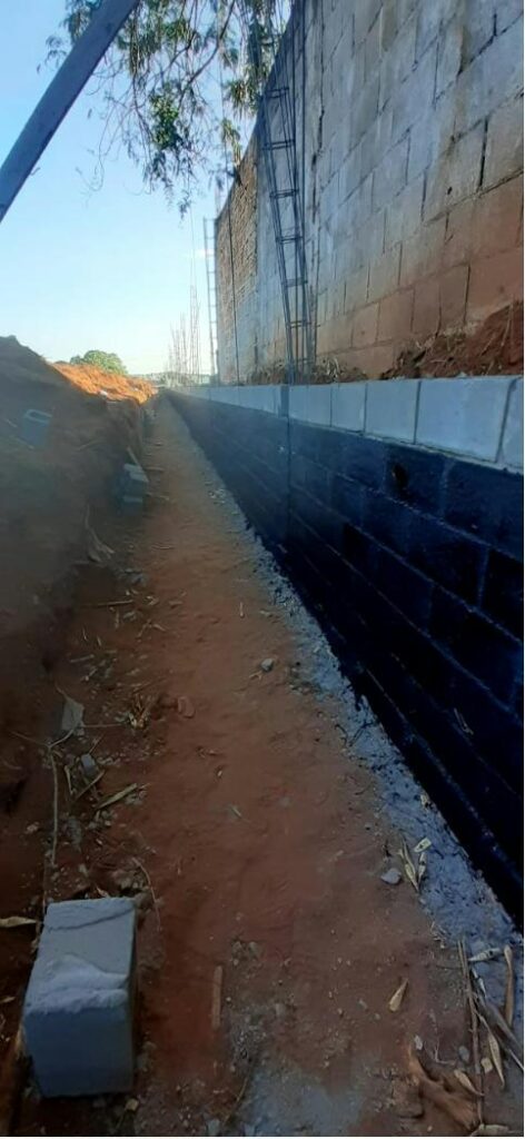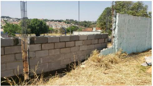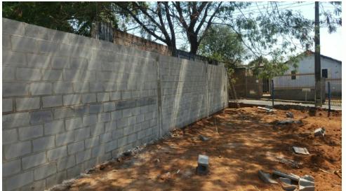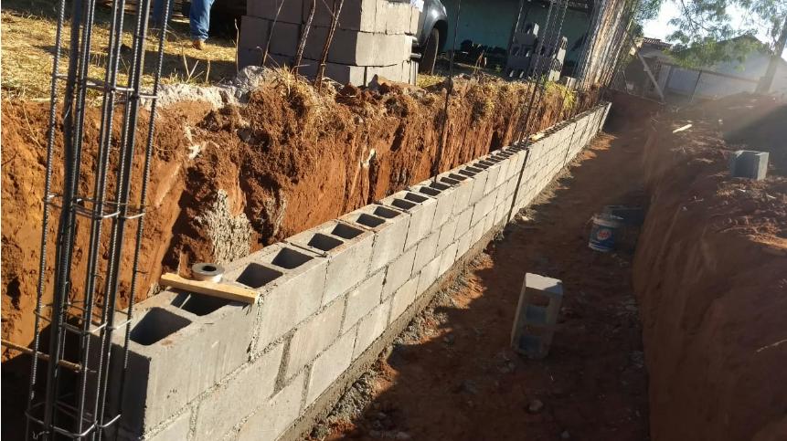 Execução de muro em alvenaria de bloco estrutural, fundação em estrutura de concreto armado (estacas, blocos e baldrames)